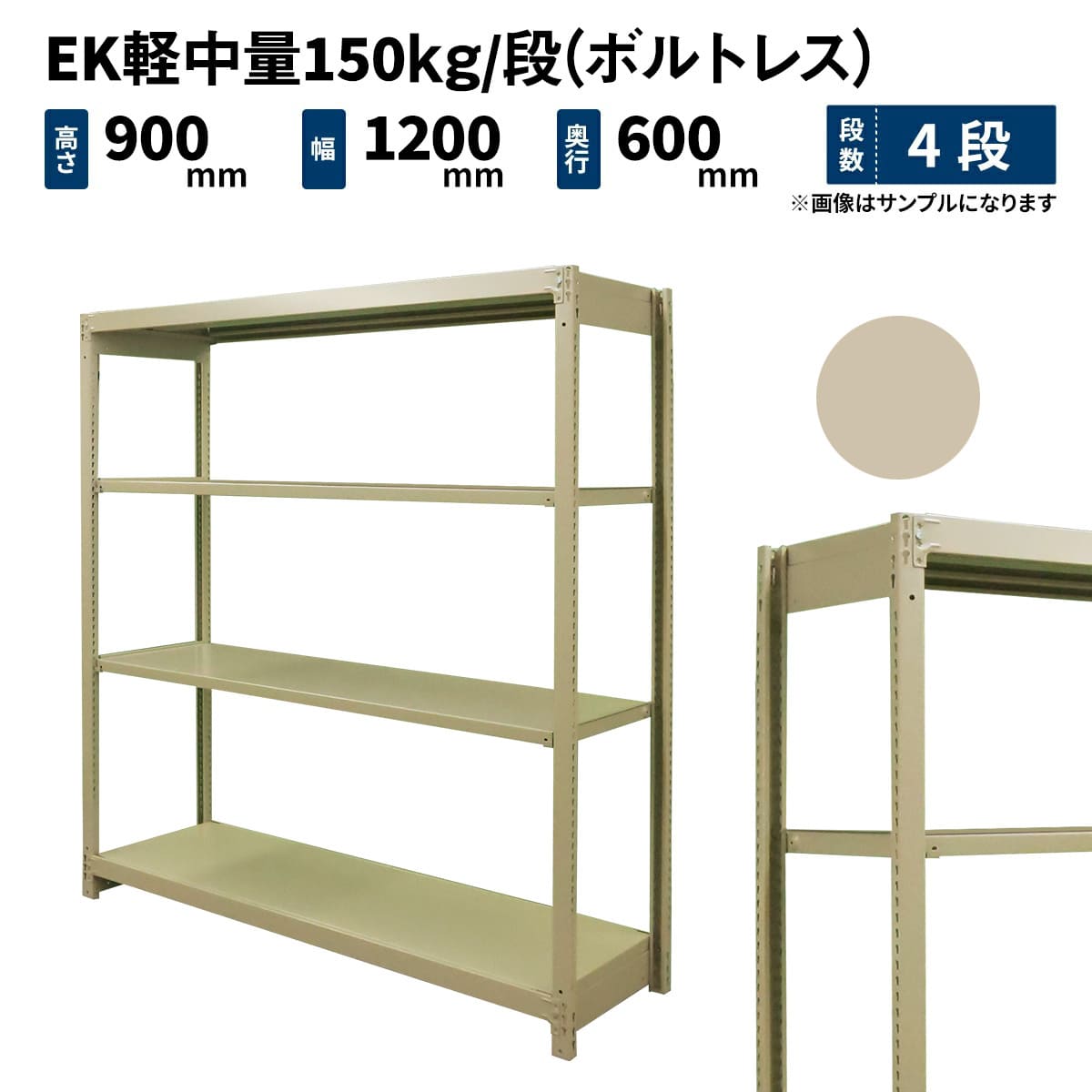 EK軽中量 150kg/段 (ボルトレス) 高さ900×幅1200×奥行450mm 単体