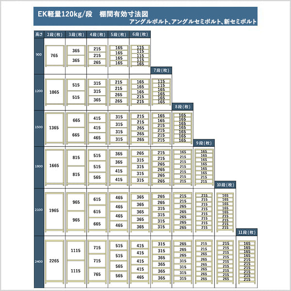 EK軽量120kg/段(アングルボルト)まとめ
