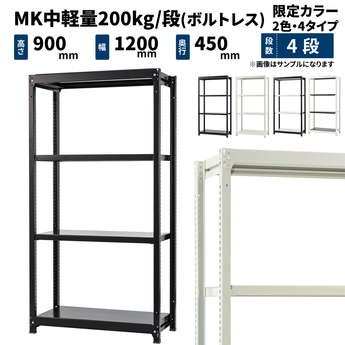 MK中軽量 200kg/段 (ボルトレス) カラーラック 高さ900×幅1200×奥行450mm 連結