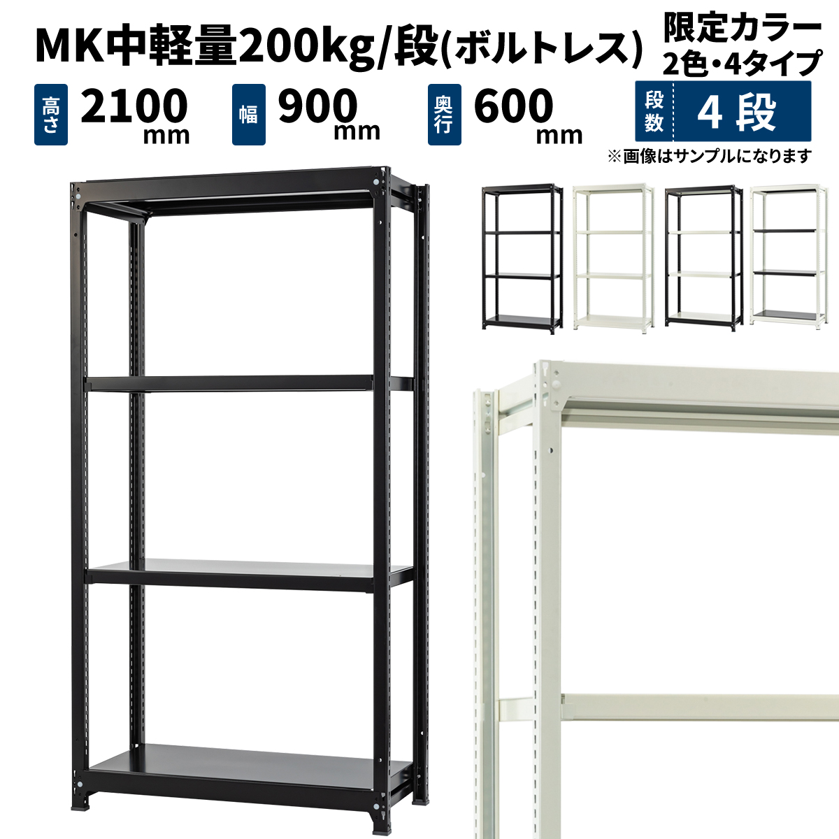 MK中軽量 200kg/段 (ボルトレス) カラーラック 高さ2100×幅900×奥行600mm 連結