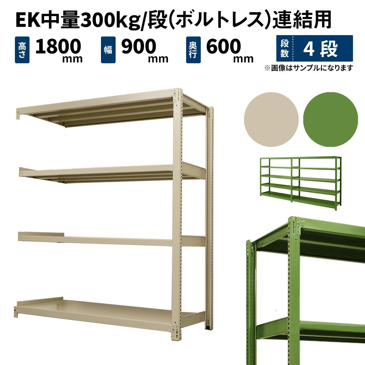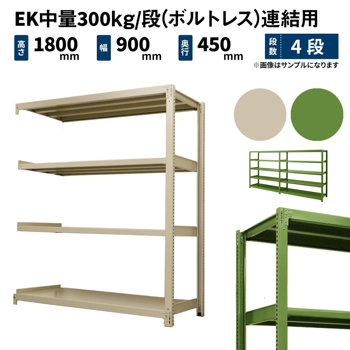 EK中量 300kg/段 (ボルトレス) 高さ1800×幅900×奥行450mm 連結