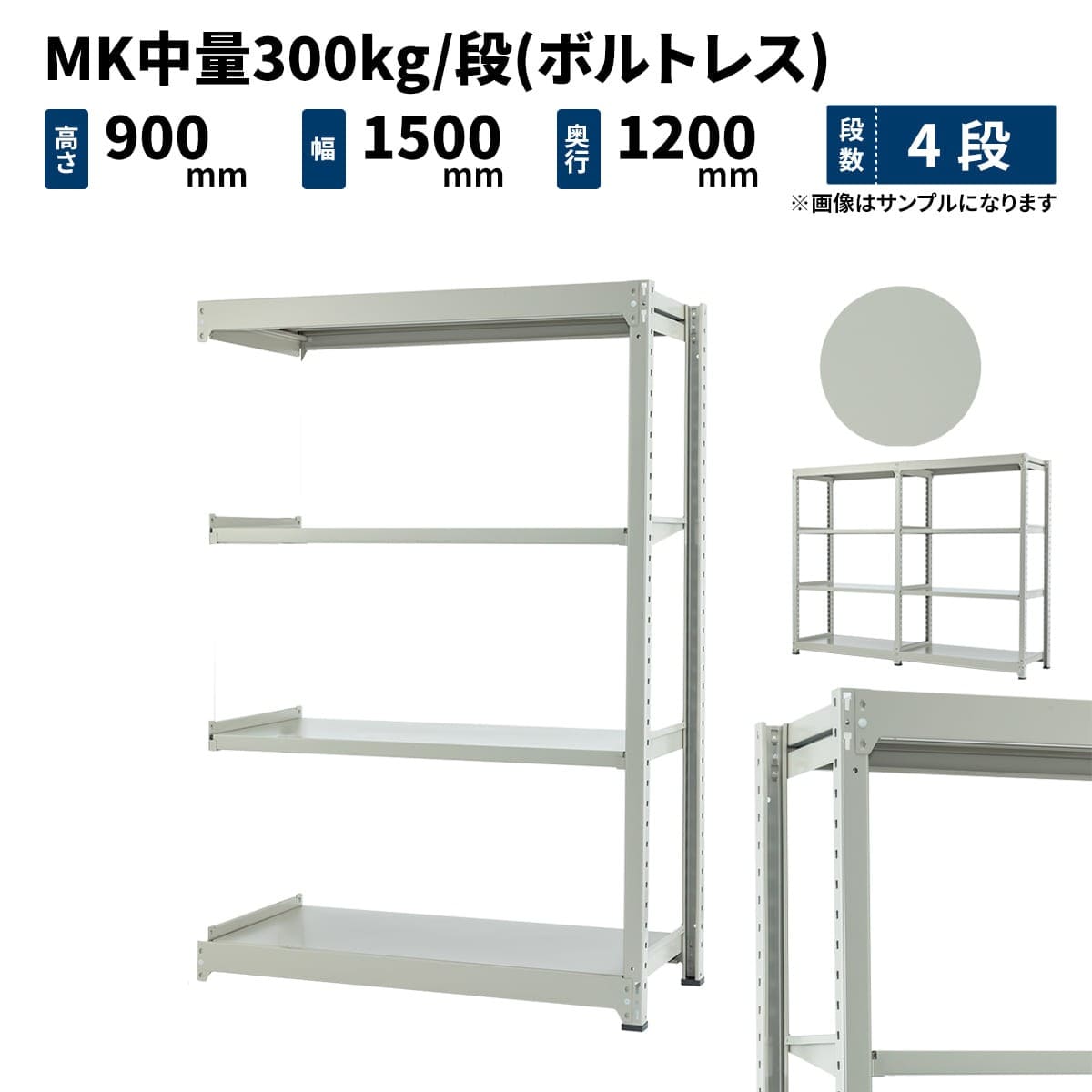 MK中量 300kg/段 (ボルトレス) 高さ900×幅1500×奥行1200mm 単体