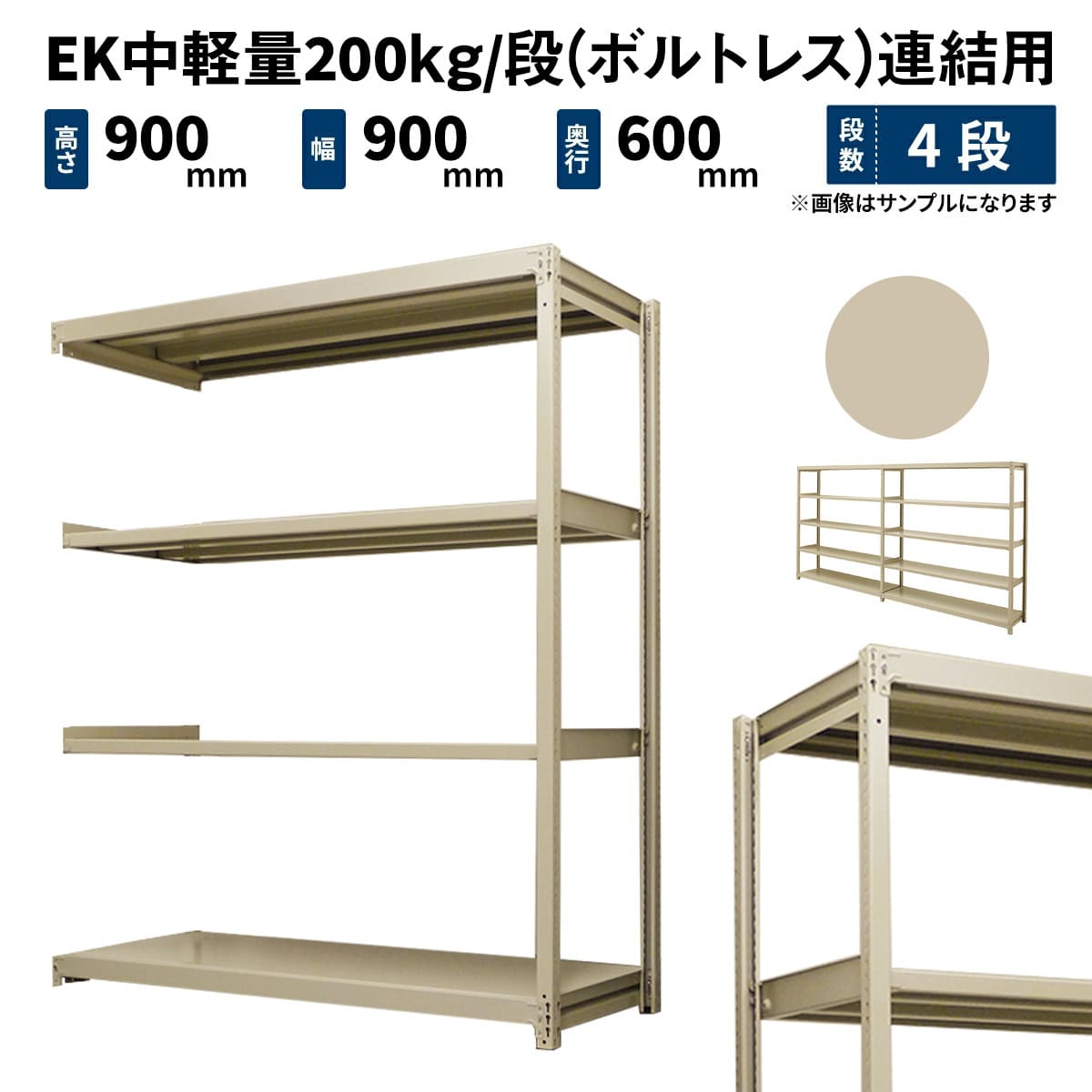 EK中軽量 200kg/段 (ボルトレス) 高さ900×幅900×奥行450mm 連結