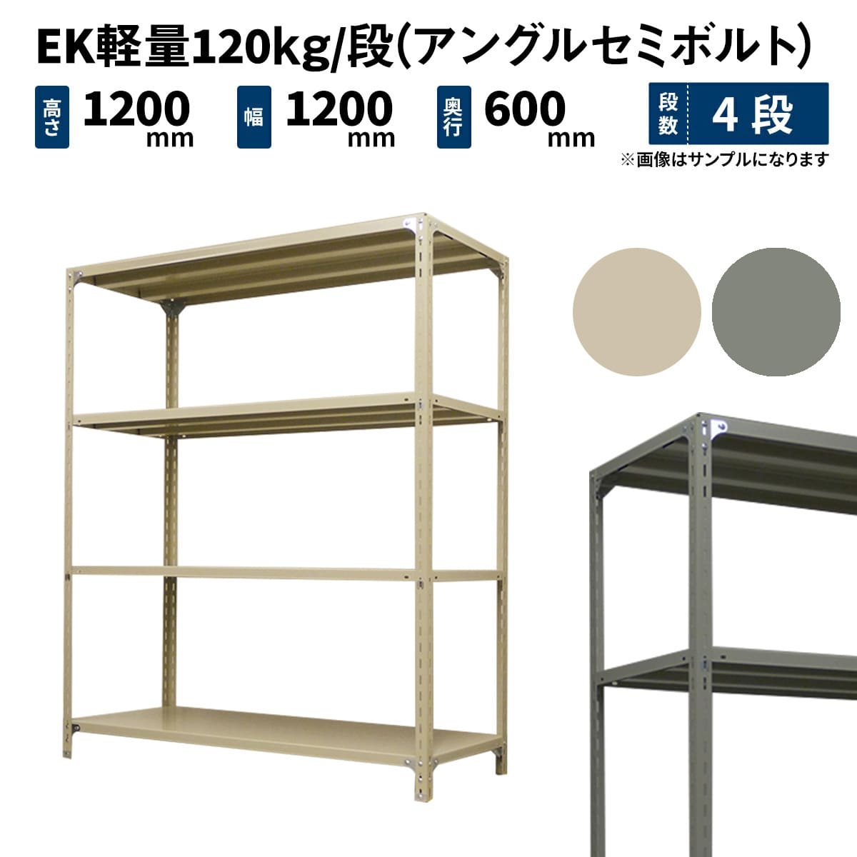 EK軽量 120kg/段 (アングルセミボルト) 高さ1200×幅1200×奥行600mm 単体